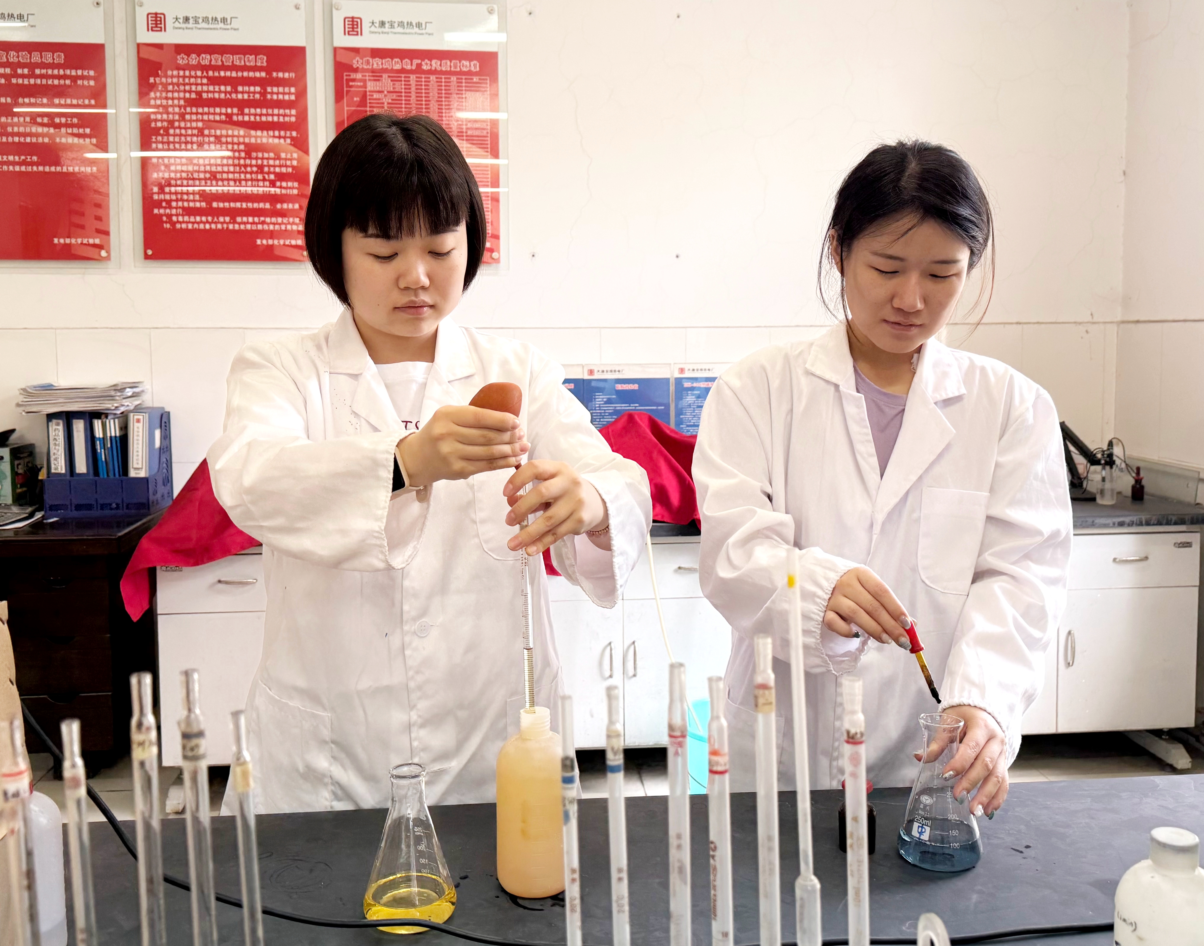 盛夏的驕陽(yáng)如同耀眼的金箔,滾燙的熱浪肆虐在西府大地上。當(dāng)人們想盡辦法躲避酷暑時(shí),寶雞熱電廠的化學(xué)實(shí)驗(yàn)室里,有著一群執(zhí)著的“微觀守護(hù)者”,他們手持精密的儀器,在瓶瓶罐罐與數(shù)據(jù)報(bào)表之間,用專業(yè)與堅(jiān)守,為電廠的穩(wěn)定運(yùn)行筑起一道隱形的防線。