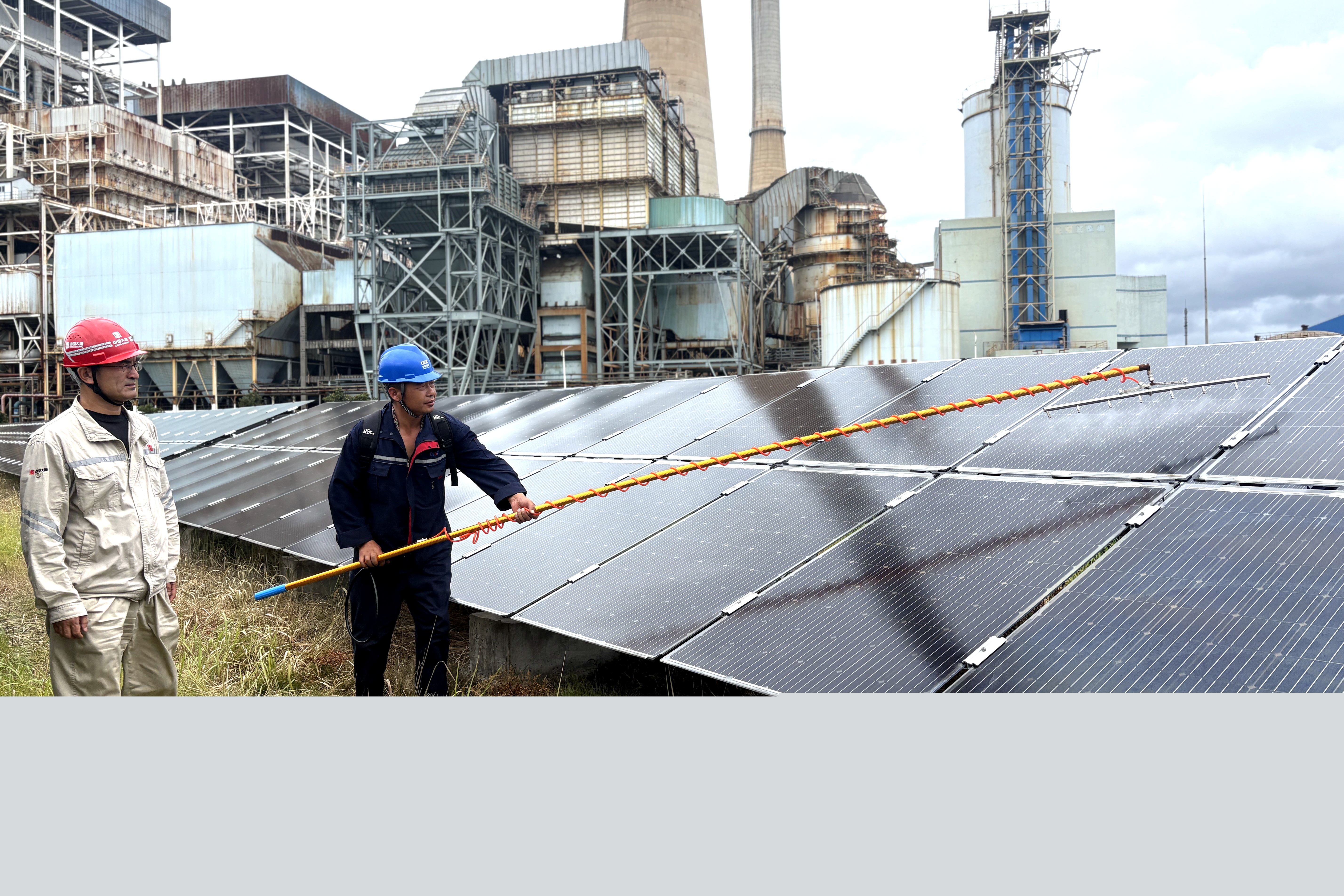 浙江新能源公司烏沙山廠區(qū)光伏電站位于火電廠生產(chǎn)區(qū)域二期場地,這里常年彌漫著白色蒸汽。蒸汽遇冷凝結(jié)后,會形成“石膏雨”,在光伏板表面結(jié)成水漬般的污垢。過去,該公司采用“人工+機(jī)器人”的清潔方式,往往剛清洗完畢,“石膏雨”便又隨之落下,最多三天,光伏板就會和未清洗時一樣。不僅如此,每次清潔時必須使用專用清洗劑,每塊光伏板要清洗5遍以上,但“細(xì)心呵護(hù)”后發(fā)電效率依舊不理想?!敖M件清洗就是治標(biāo)不治本,不加以重點(diǎn)防治,清洗也是徒勞?!睂幉▍^(qū)域運(yùn)維中心主任曹魯心感慨道。