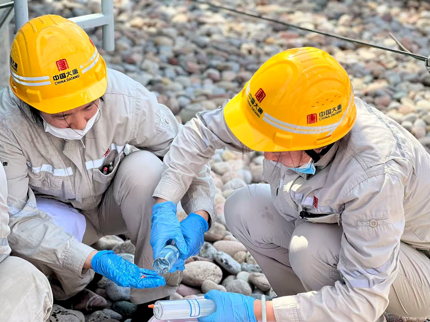 4位身著工裝的“娘子軍”手提取樣瓶,穿梭在設(shè)備之間——有人手里攥著棉布,隨時(shí)準(zhǔn)備擦拭取樣瓶;有人護(hù)著裝滿油樣的取樣瓶,生怕被陽光直射影響樣品質(zhì)量。盡管臉龐被曬得通紅,汗水在安全帽帶下匯成細(xì)流往下淌,但遞工具、接樣品、擦瓶身、封瓶口的動(dòng)作,始終有條不紊、一絲不亂。
