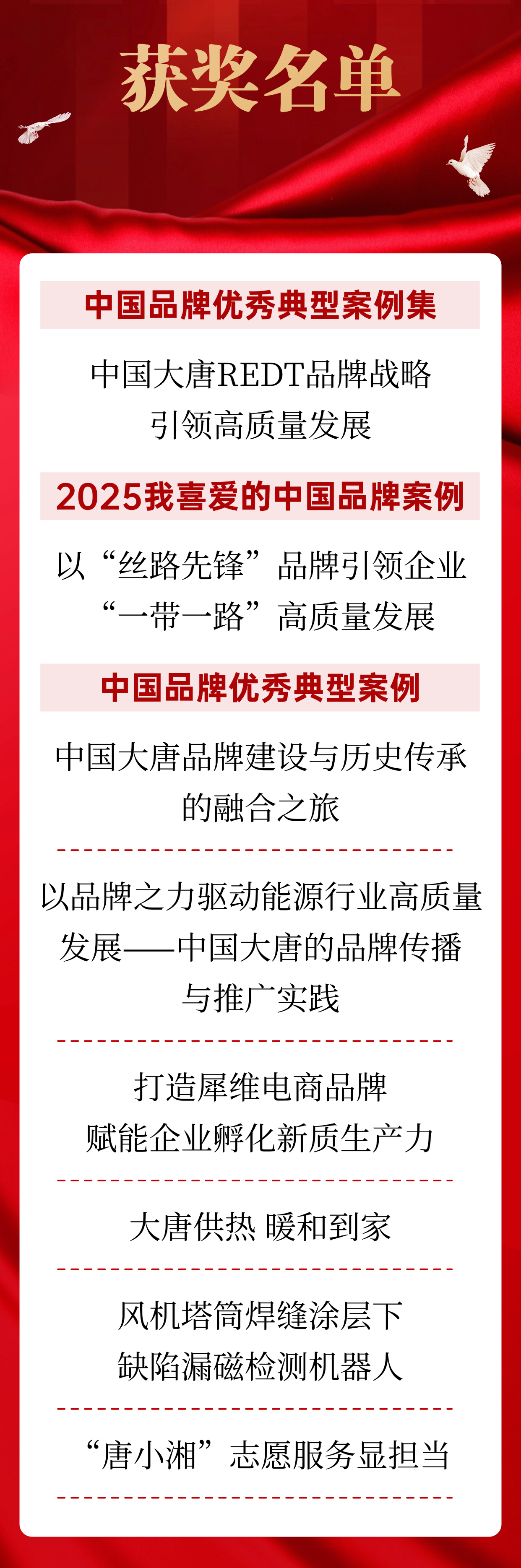 中國大唐此次入選的8個(gè)案例,內(nèi)容豐富、領(lǐng)域廣泛,充分展現(xiàn)了品牌建設(shè)的系統(tǒng)性與多樣性。