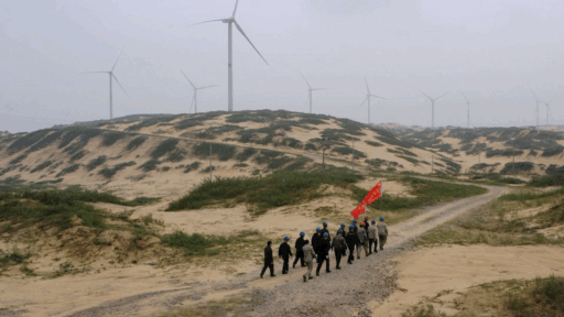 我招呼他們先把飯吃了,王鵬卻著急往風(fēng)機輪轂里鉆,他說:“換完變槳電機再吃,另外兩個同事都還在里面等我呢。”我向狹小的通道內(nèi)探了探頭,輪轂內(nèi)的溫度竟然比機艙內(nèi)的溫度還要高,測溫槍上顯示足足有50度。我看著三位大漢面面相覷,他們臉上豆大的汗珠在瑩瑩燈光的映照下愈發(fā)顯得耀眼。 1、2、3,1、2、3,他們憋紅著臉,合力將一百多斤的電機抬下,再用安全繩將電機掛好。更換完電機,他們癱坐在地上,笑著享用今天的午餐。青春就是如此:艱難困苦得以成長,汗流浹背得以成熟,理想信念得以團結(jié)。