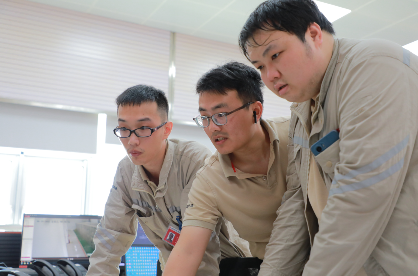 腦、眼、手、電話不停,是維護(hù)班班長(zhǎng)姚海扣的特色,此時(shí)他正在有條不紊地安排年度預(yù)試期間班組的各項(xiàng)工作。