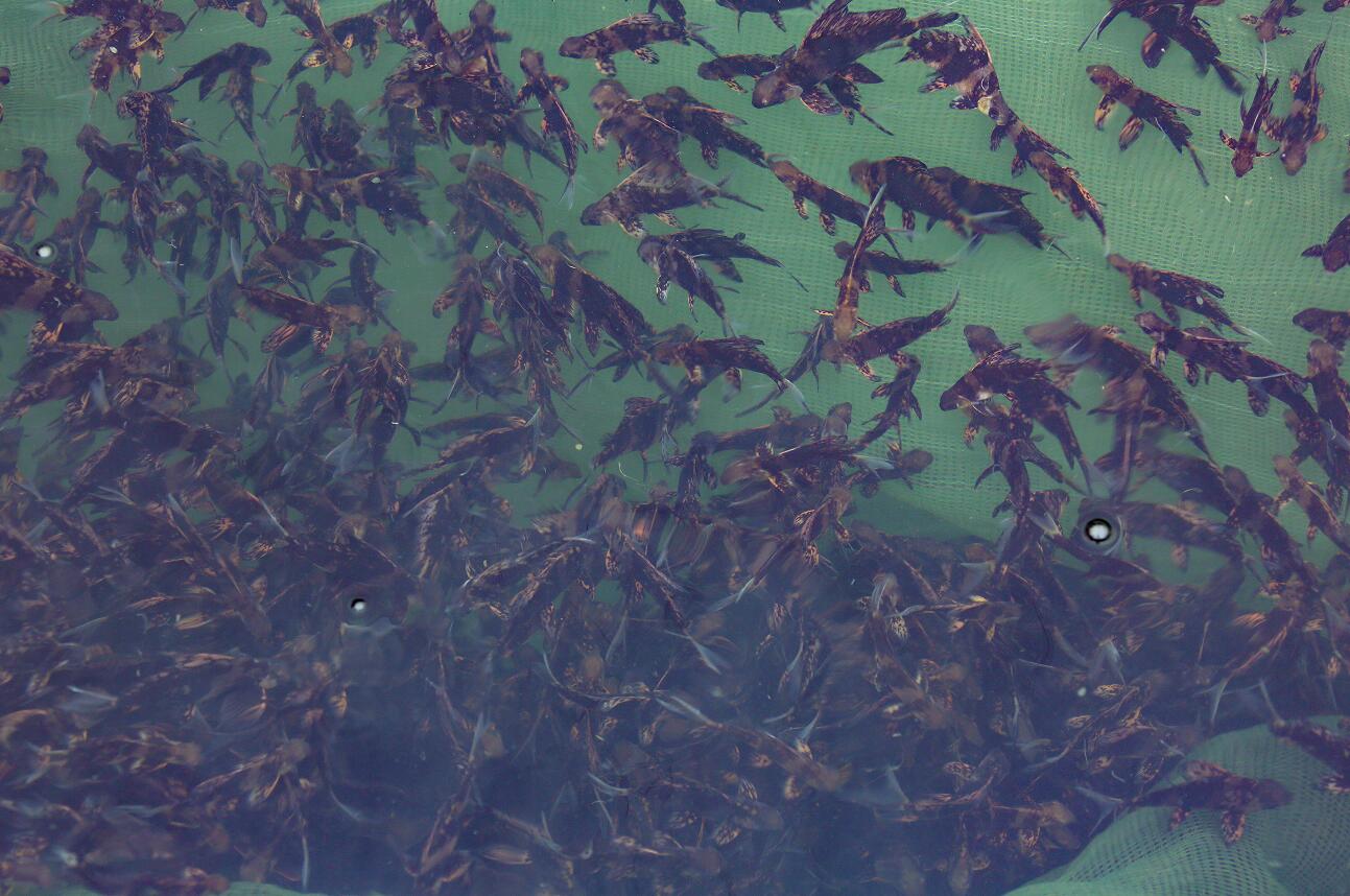 4月12日,重慶分公司彭水-武隆銀盤水電站魚類增殖放流站內(nèi),40個(gè)方方正正的水池內(nèi),工作人員在為水中的魚苗充氧。這個(gè)放流站堪稱魚類“托兒所”,有親魚池、苗種池、繁育車間、供排水系統(tǒng)等完備設(shè)施,能夠滿足種魚飼養(yǎng)、魚苗孵化和培育等要求。