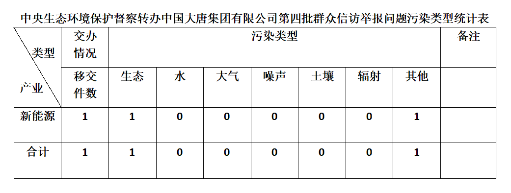 2025年6月6日,中央第七生態(tài)環(huán)境保護(hù)督察組向中國大唐集團(tuán)有限公司移交第四批群眾信訪舉報(bào)件,共計(jì)1件,為來信舉報(bào),涉及生態(tài)問題1個、其他問題1個。所有舉報(bào)件辦理工作已第一時間進(jìn)入調(diào)查核實(shí)辦理程序,辦理情況將按照相關(guān)要求反饋督察組,并及時向社會公開。