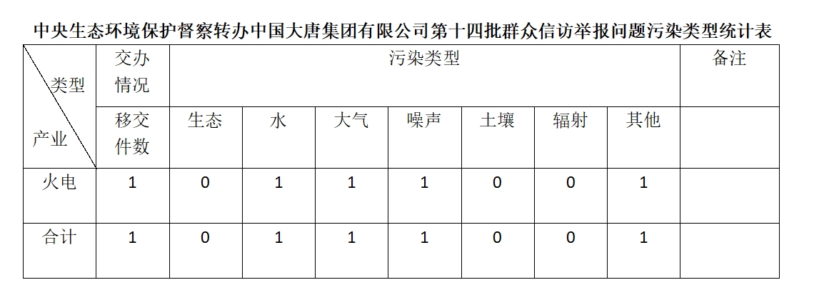 2025年6月20日,中央第七生態(tài)環(huán)境保護(hù)督察組向中國大唐集團(tuán)有限公司移交第十四批群眾信訪舉報件,共計1件,為來電舉報,涉及水問題1個、大氣問題1個、噪聲問題1個、其他問題1個。所有舉報件辦理工作已第一時間進(jìn)入調(diào)查核實(shí)辦理程序,辦理情況將按照相關(guān)要求反饋督察組,并及時向社會公開。
